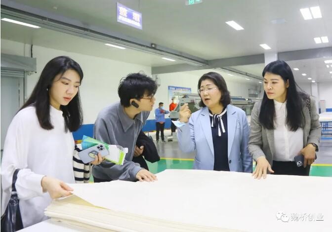 Zhang Hongxia extended a warm welcome to the guests and accompanied them to visit the Weiqiao Textile Green and Intelligent Third Branch, Technology R&D Center, Home Textile and Apparel Exhibition Hall and Xiangshang Sports and Jiajia Home Textile Flagship Stores, and introduced the company's development history, basic overview and operation of home textiles and clothing brands to them during the visit.